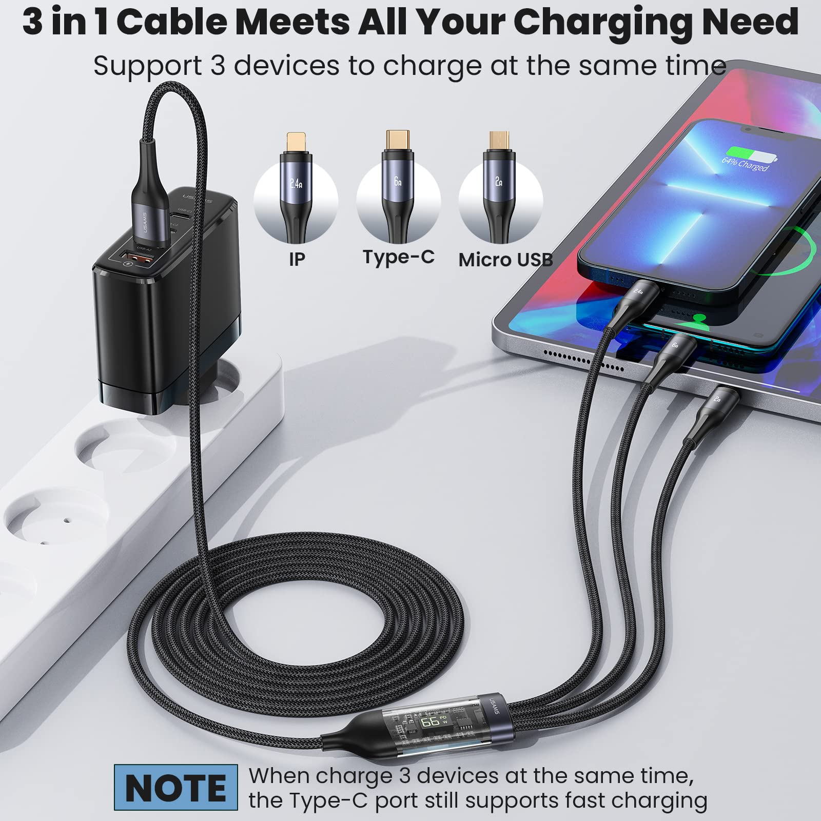 USAMS 3IN 1 TRANSPARENT DIGITAL DISPLAY FAST CHARGING CABLE -SJ582