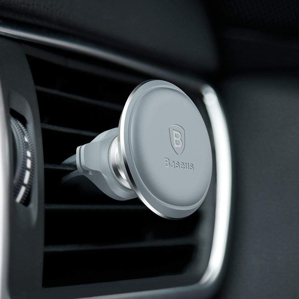 BASEUS-MAGNETIC-AIR VENT-CAR MOUNT W/CABLE CLIP-SILVER