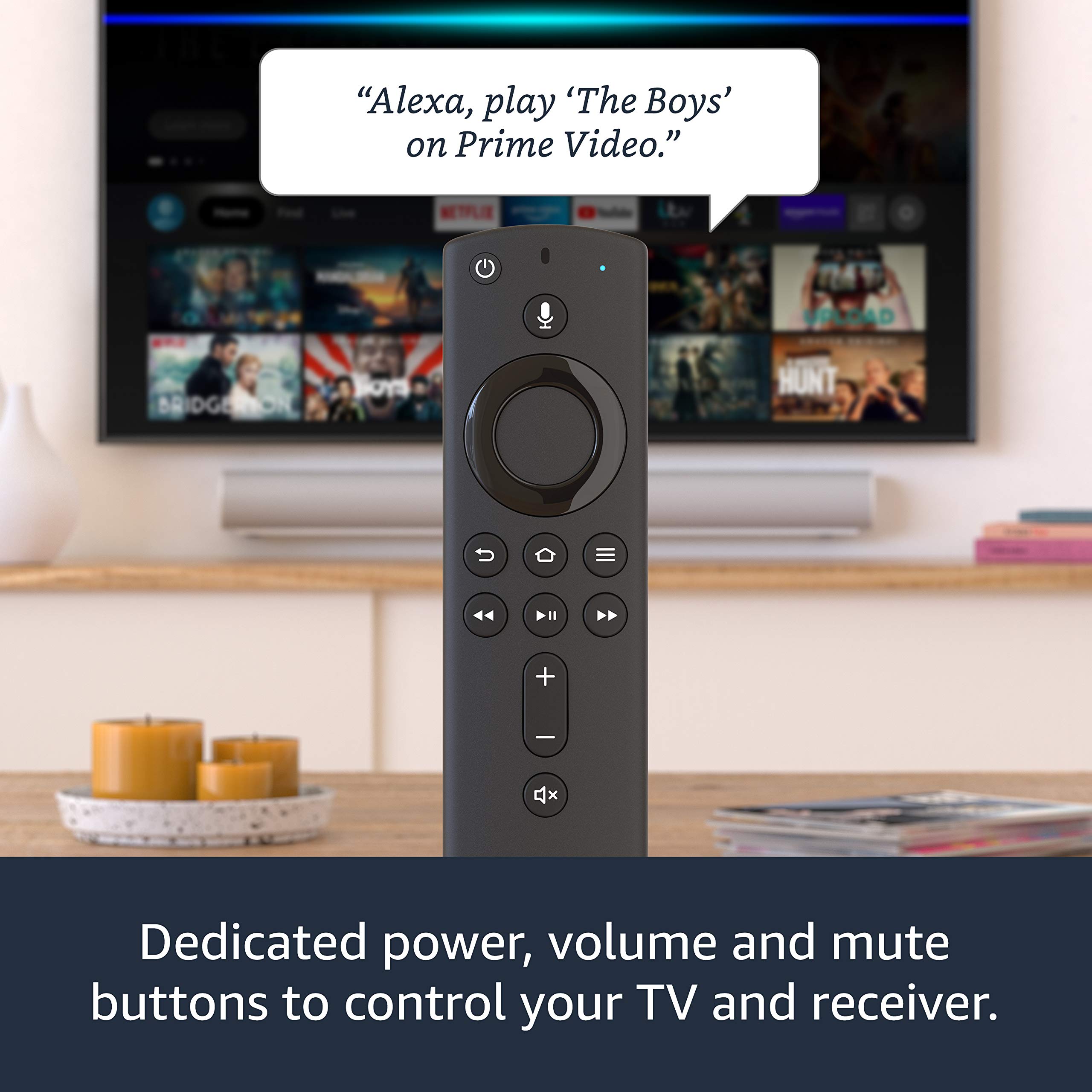 The included Alexa Voice Remote can control the Fire TV Stick 4K and certain functions (such as power and volume) on a wide range of compatible IR-enabled devices, including TVs, soundbars and A/V receivers. Note: Certain functions may not be available on some IR-enabled devices. |