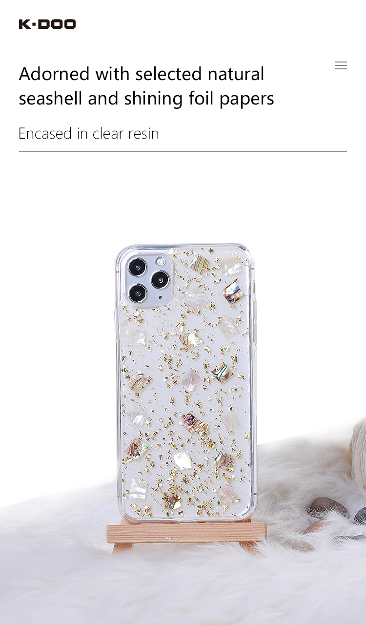 K-DOO IPH14 FLASH SERIES GLITTER HARD CASE GOLD SEASHELL