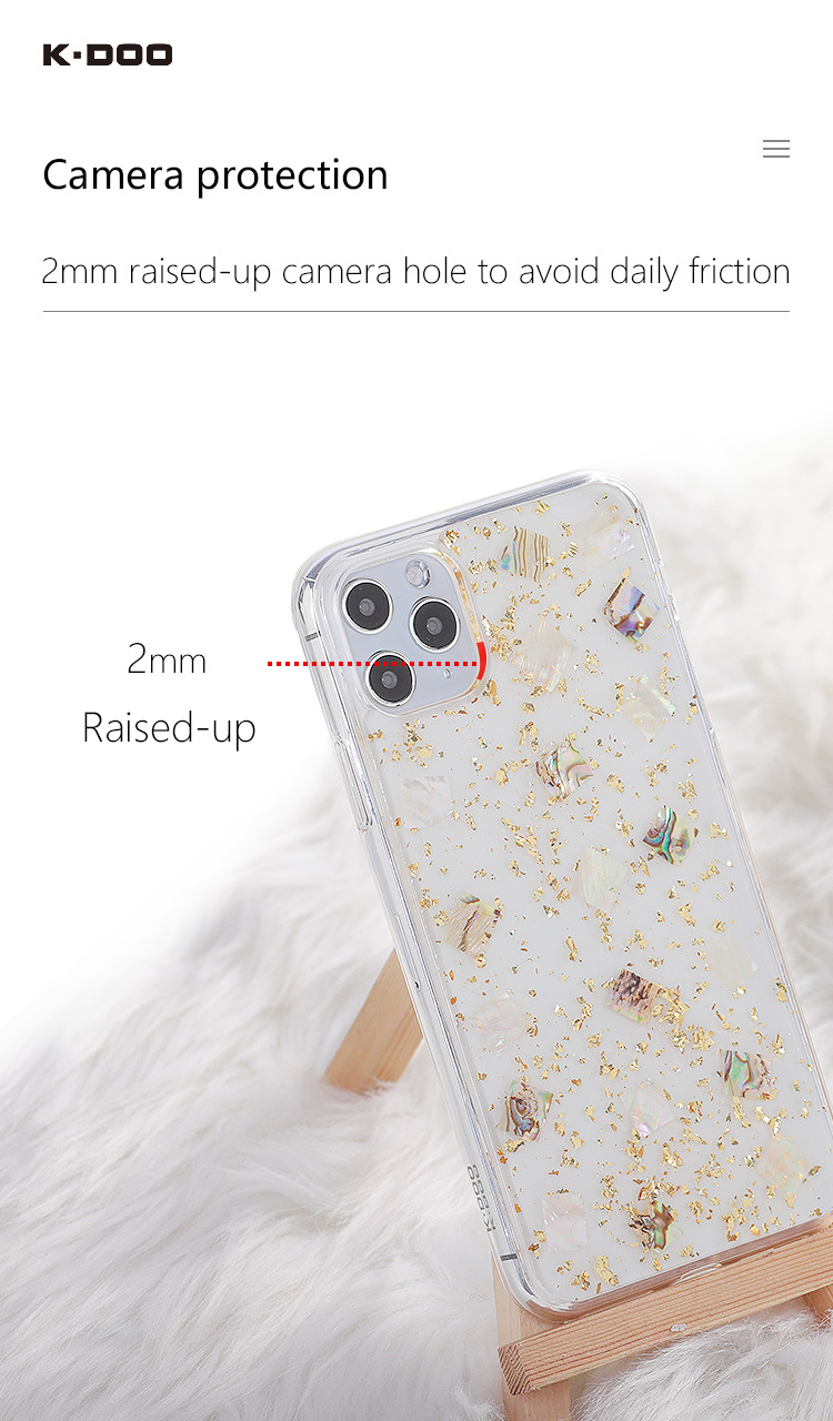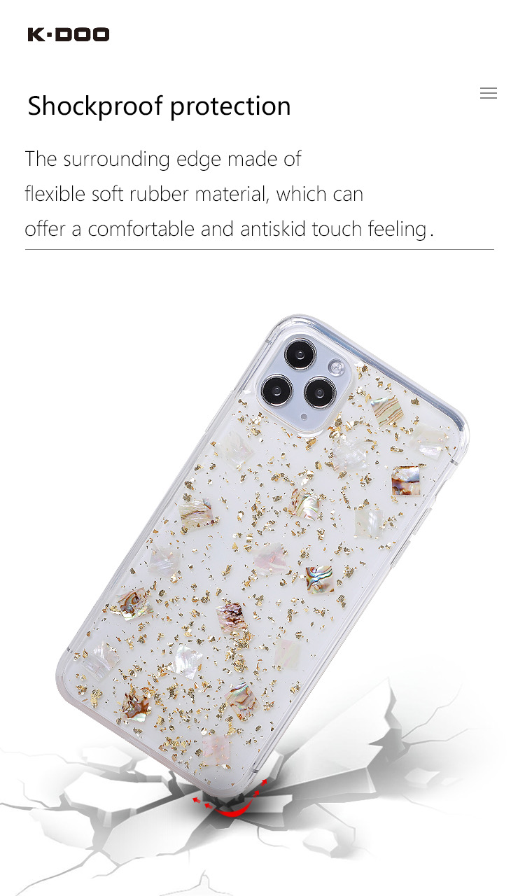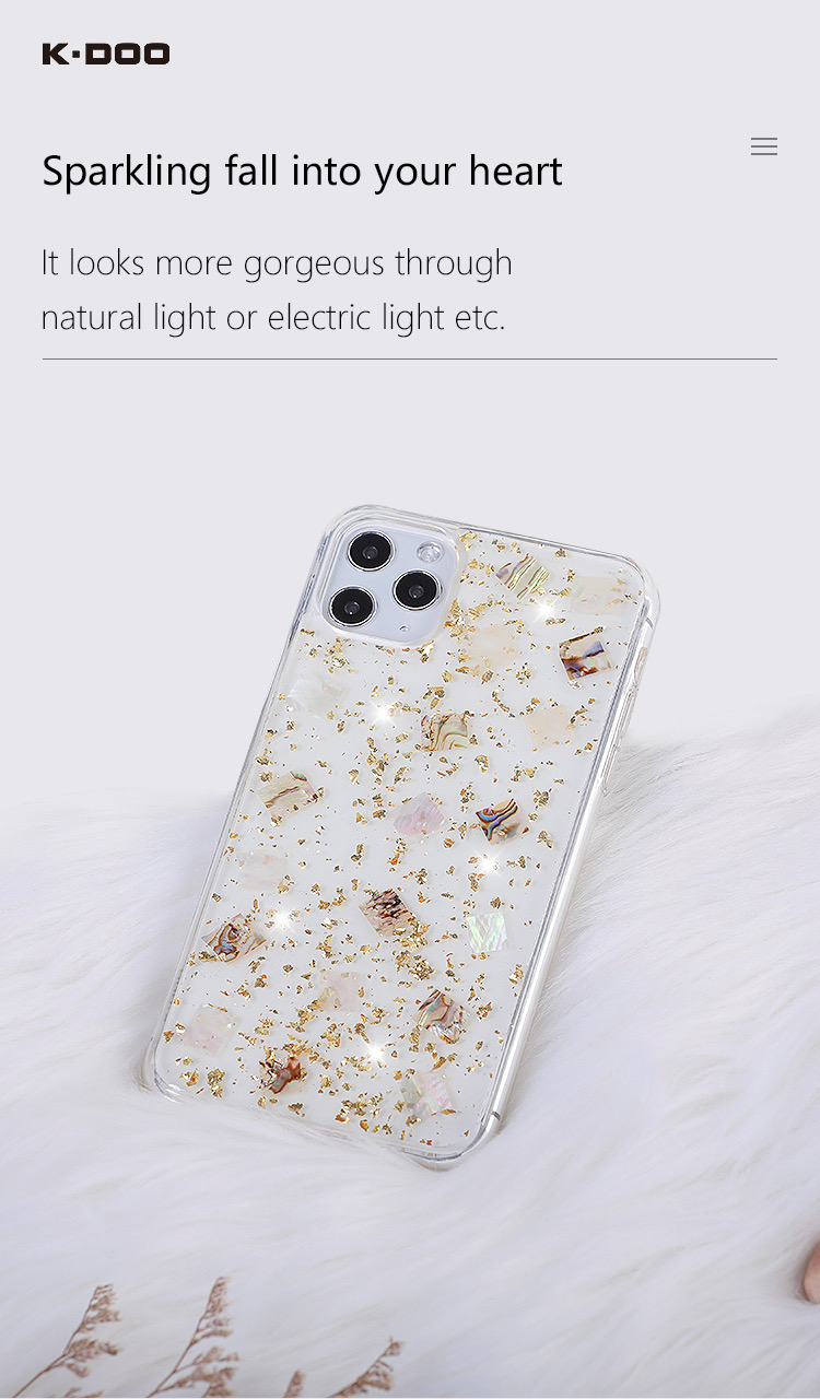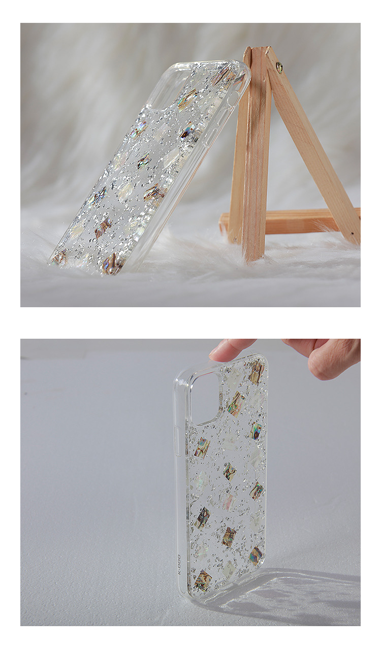 Flash series cases are Transparent and adorned with 3D shining foil paper particles The fashionable shiny glitter case makes you and your phone flash and stand out from the crowd Shock absorbent edges offer maximum protection in falls and drops Camera cutout has been raised up to avoid scratches when touching the surface Support wireless and charging without removing the case