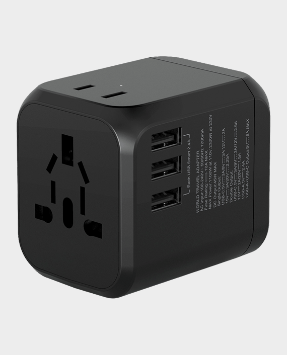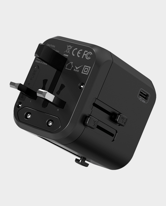 This Travel Adapter with international plug. Cover more than 150 countries with US / EU / UK / AU plugs. All - in - one adapter with fuse protect, built - in safety shutters, has 3 USB Ports 1 AC socket to charge 5 devices simultaneously with high speed and Fast PD30 W Output.