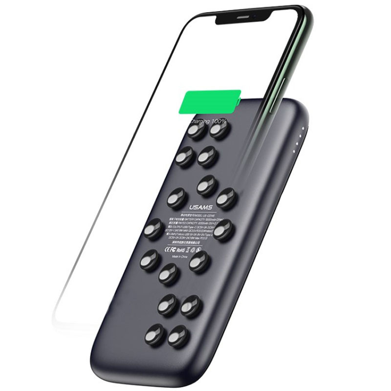 USAMS 10000MAH QC3.0+PD WIRELESS SCUCTION POWERBANK BLACK PB53