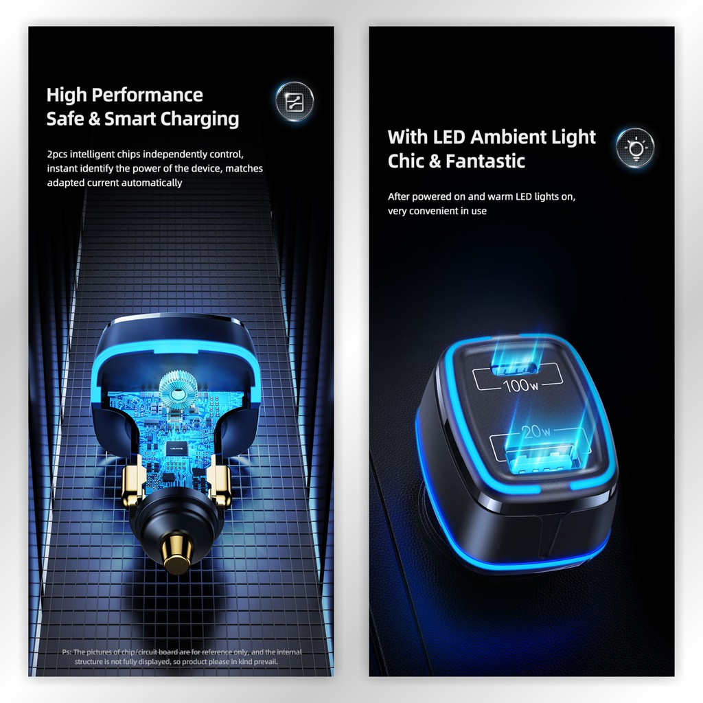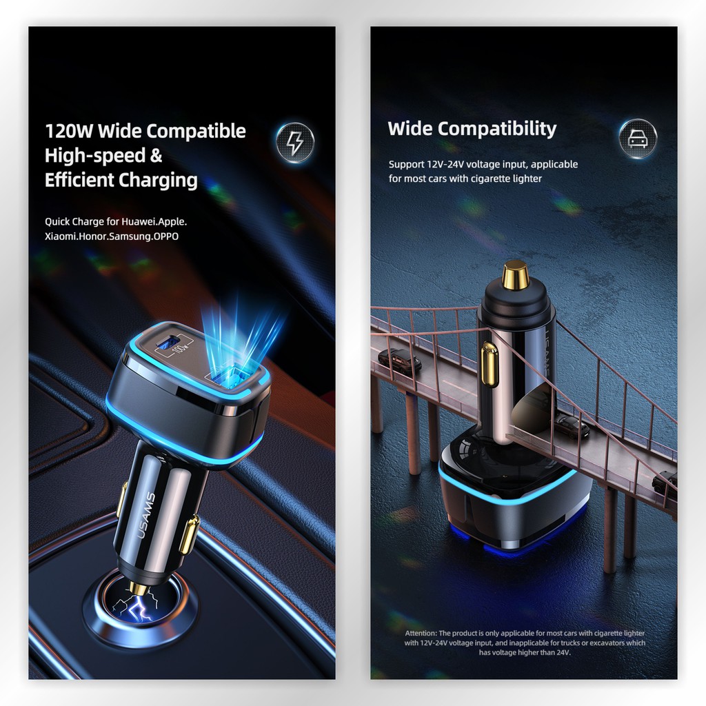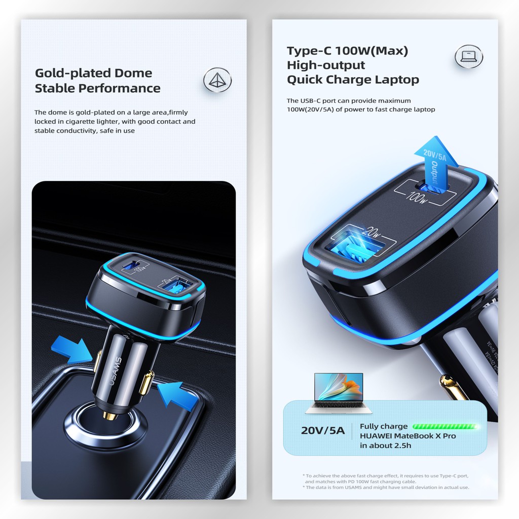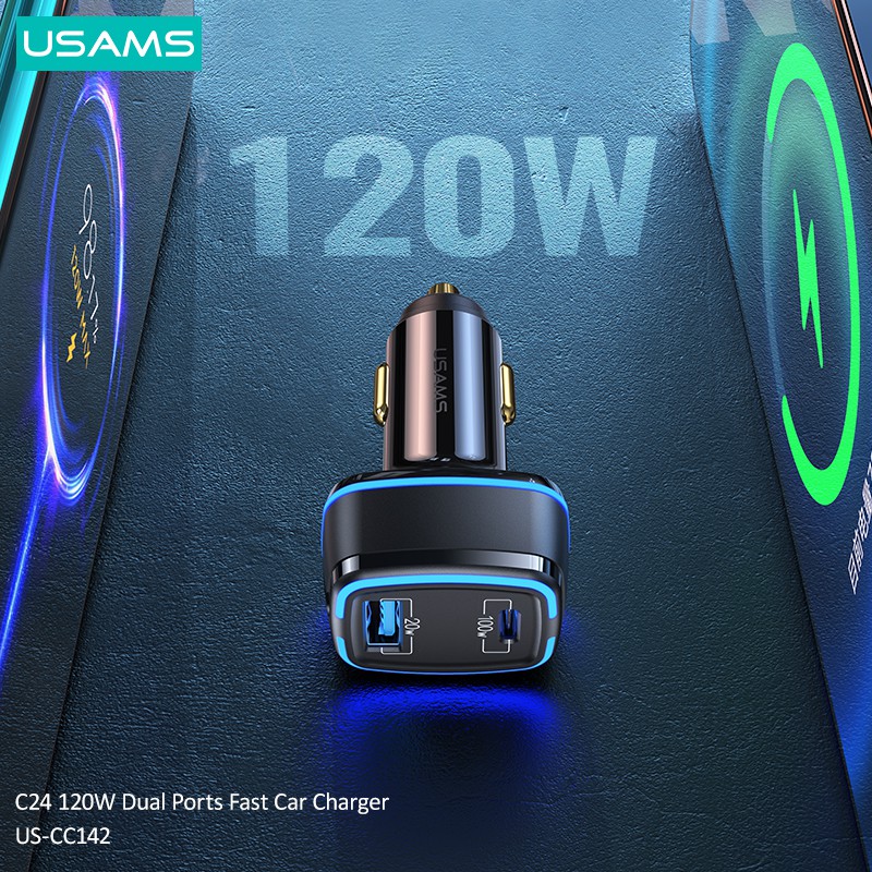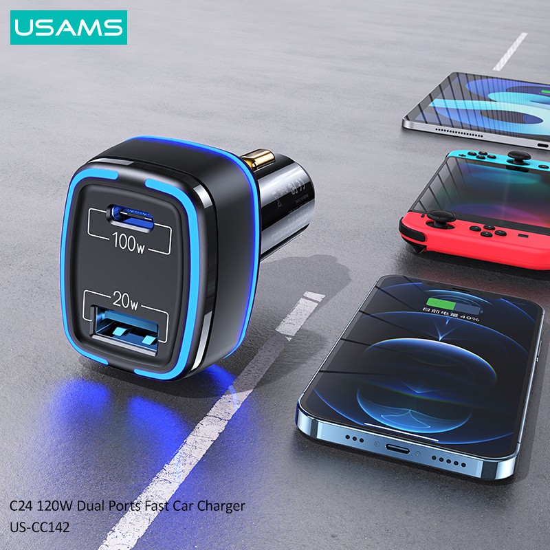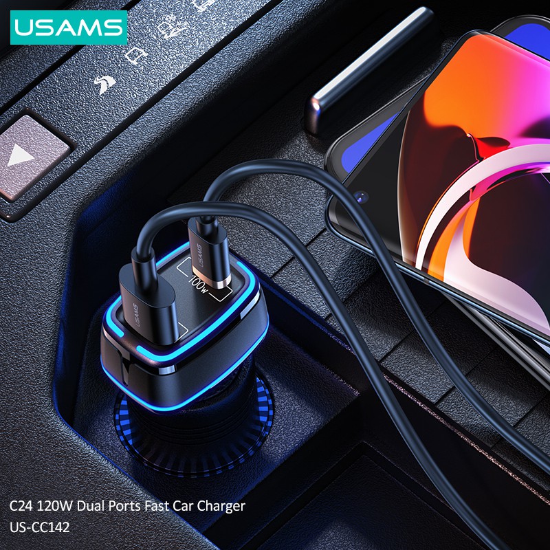 USAMS C24 100W PD+20W USB PORT CAR CHARGER BLACK