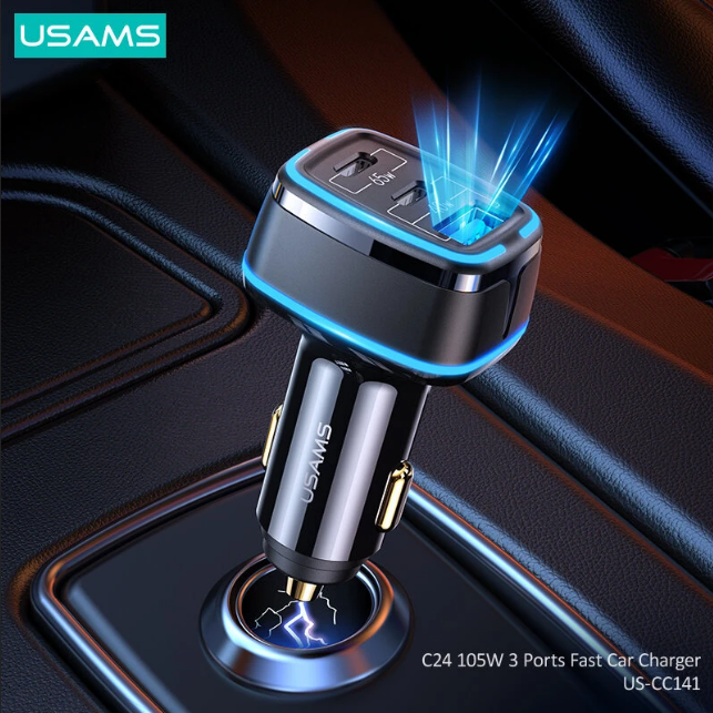 USAMS CC141 65W+20W PD/20W USB PORT CAR CHARGER BLACK